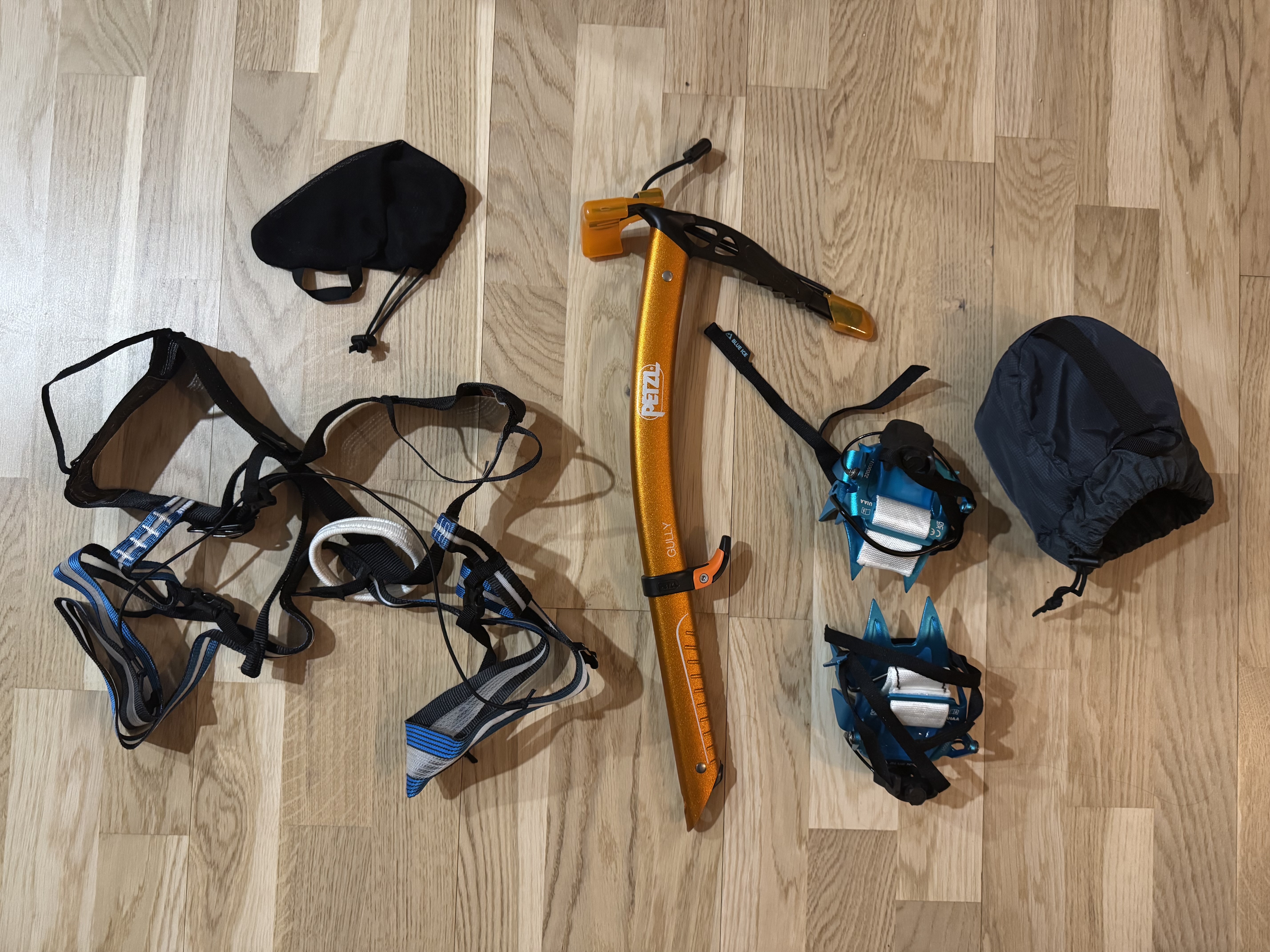 Erikoisvarusteet ja tarvikkeet lumessa ja jäässä kiipeilyyn.